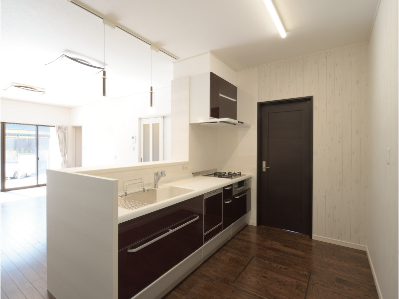 家に入るとすぐに広い玄関収納。家族が集まるLDKは19帖と広く、併設されている和室を合わせるとなんと25帖の大空間。